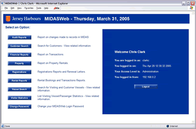 The system has allowed Jersey Harbours to provide controlled access to relevant users that didn’t require full access to the Marina Management System with little or no training. In addition no further investment in software was required as Jersey Harbours already utilise the widely used Microsoft Internet Explorer Web Browser, and have an internal Microsoft Internet Information Services (Web) Server.